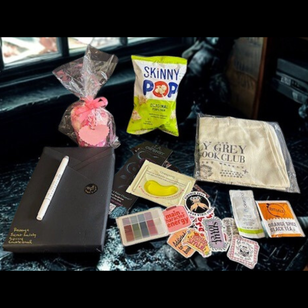 (surprise title) and bookish self-care goodies.